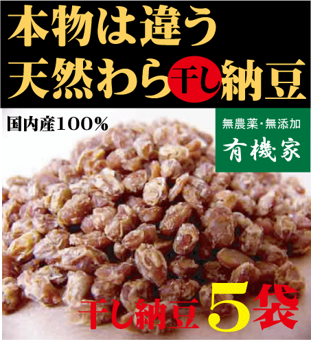 入荷不規則 干し納豆5個★送料無料(メール便)★国内産100%★天然わら納豆で作りました(50g×5個)★無添加納豆★代引き不可