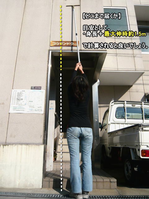 あと1.5メートル伸ばせる高所窓掃除用棒はお任せ♪