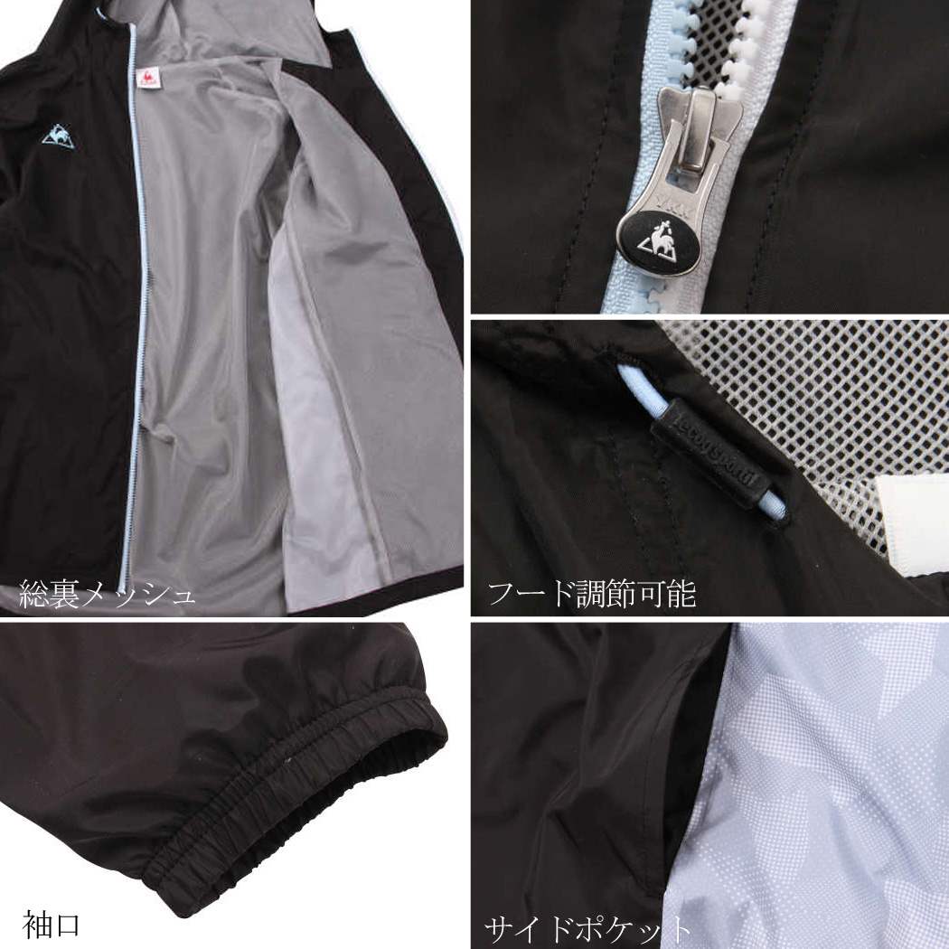 撥水/フード(調節可能)/総裏メッシュ/サイドポケット有/プリント(ラバー)/フルジップ/ラグラン袖/袖口ゴムシャーリング/バックデザイン無 サガンスタイル 20190221新着薄手でしなやかな素材に撥水性をプラスしたLE COQ SPORTIF (ルコックスポルティフ)のウインドジャケット。